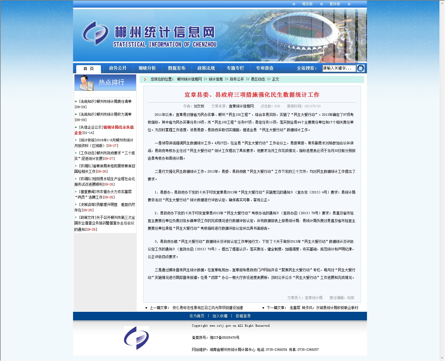 1.县委办、县政府办下发的《关于印发宜章县2013年“民生大爱行动”实施意见的通知》(宜办发〔2013〕4号)要求:县统计局要依法对“民生大爱行动”统计数据进行评估认定,确保真实可靠、客观公正。