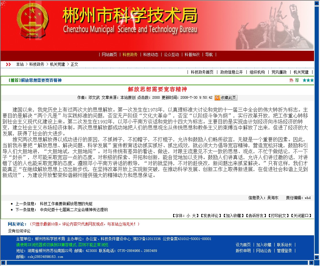 推究两次思想解放得以成功进行的原因,不抓辫子,不扣帽子,不打棍子,允许和鼓励人们畅所欲言,无疑是一个重要的因素。因此,当前我市要把“解放思想、解决问题、科学发展”宣传教育活动抓实抓好、抓出成效,就必须大力倡导宽容精神,营造宽松环境,鼓励和引导人们大胆地讲,“大胆地试,大胆地闯”。对与传统有差异的看法、做法,对跟主流意见不太一致的思想、观点,不忙于做结论,不一下子“封杀”,尽可能采取宽容一点的态度。对积极的探索、开拓和创新,能自觉地加以支持。鼓励人们讲真话,允许人们讲过激的话,对讲错了话的人也能采取宽厚的态度。遵照邓小平南方讲话的教导,“对的就坚持,不对的赶快改,新问题出来抓紧解决。”只有这样,我们才能真正“在继续解放思想上迈出新步伐,在坚持改革开放上实现新突破,在推动科学发展、创新工作上取得新进展,在促进社会和谐上见到新成效”,为建设开放繁荣和谐郴州提供强大的精神动力和思想保证。