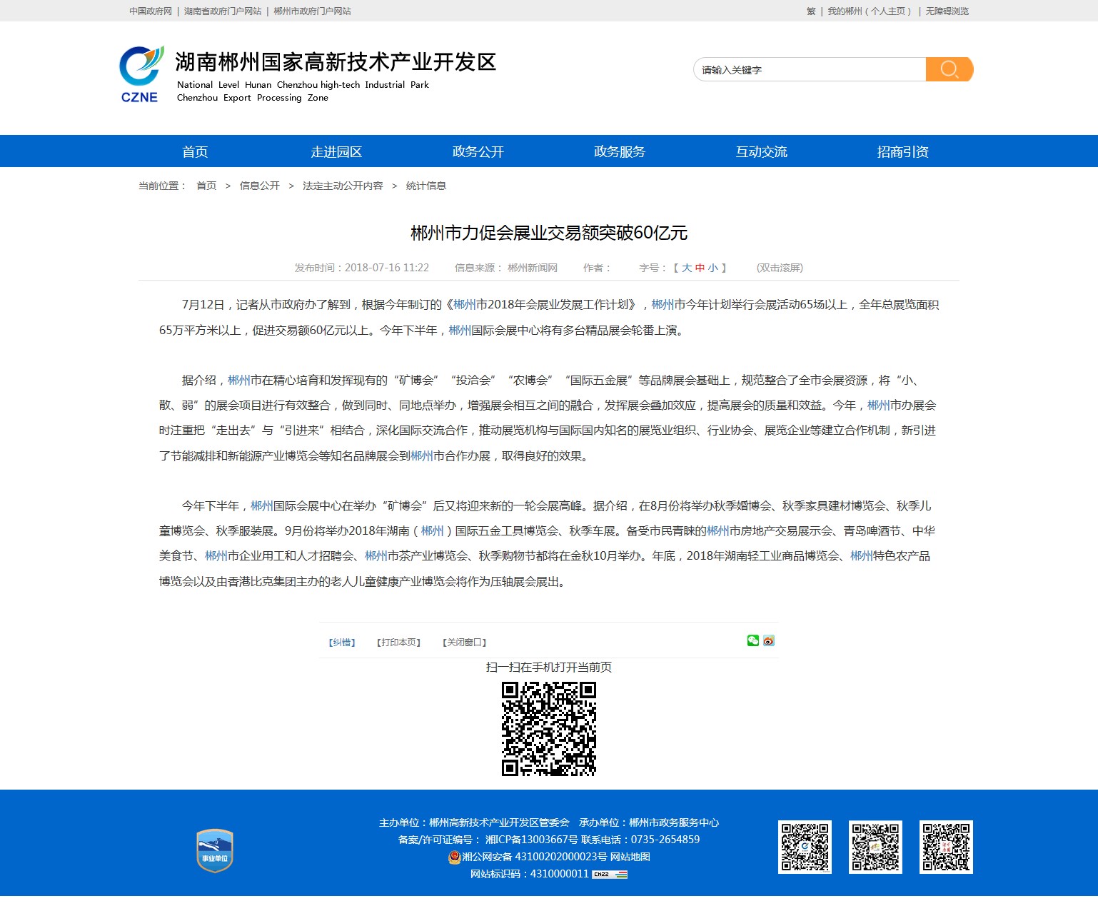 7月12日,记者从市政府办了解到,根据今年制订的《郴州市2018年会展业发展工作计划》,郴州市今年计划举行会展活动65场以上,全年总展览面积65万平方米以上,促进交易额60亿元以上。今年下半年,郴州国际会展中心将有多台精品展会轮番上演。