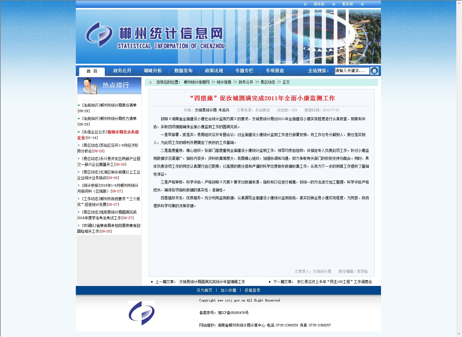 按照《湖南省全面建设小康社会统计监测方案》的要求,汝城县统计局对2011年全面建设小康实现程度进行认真核查、测算和评估,采取四项措施确保全面小康监测工作的圆满完成。