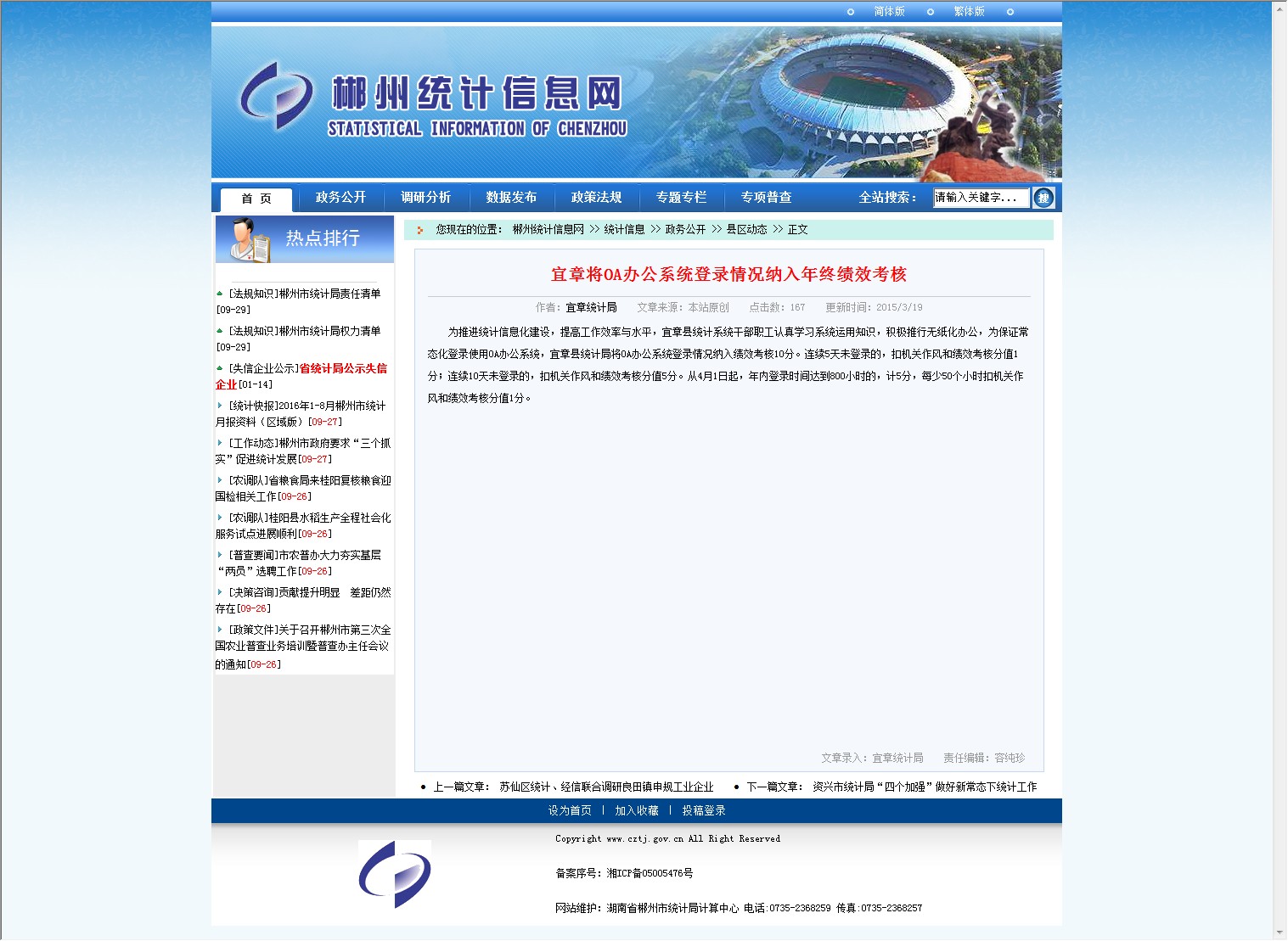发文机构:郴州市统计局