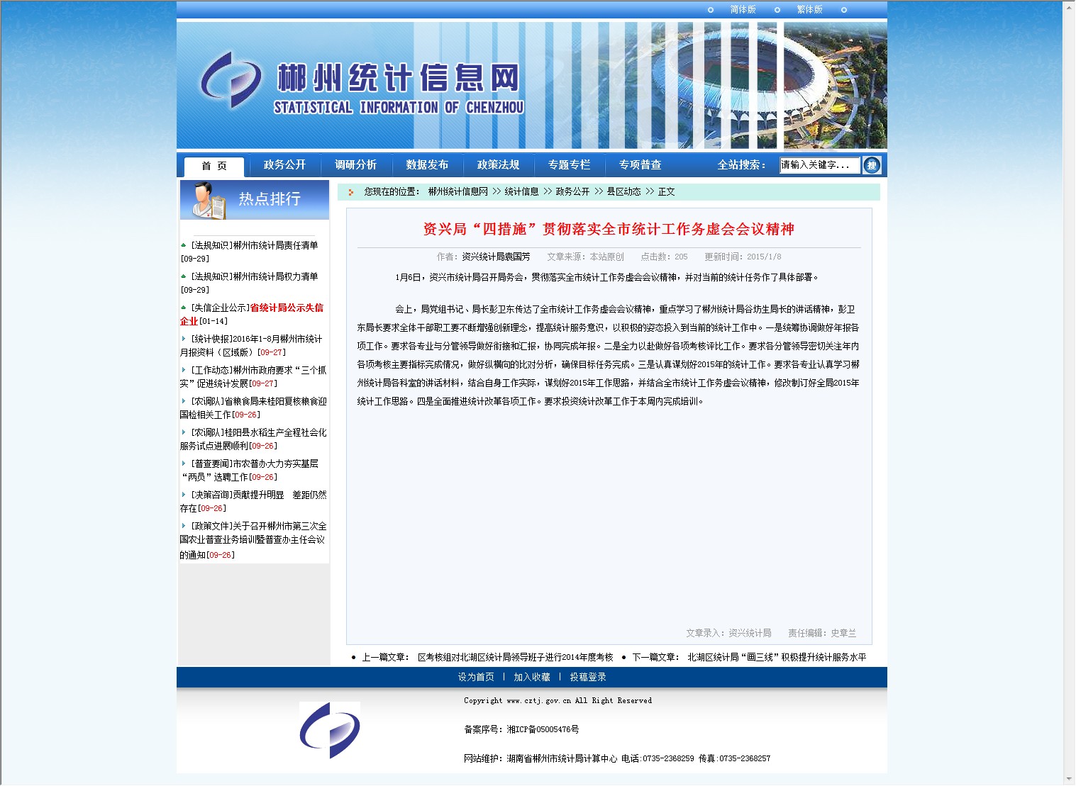 1月6日,资兴市统计局召开局务会,贯彻落实全市统计工作务虚会会议精神,并对当前的统计任务作了具体部署。